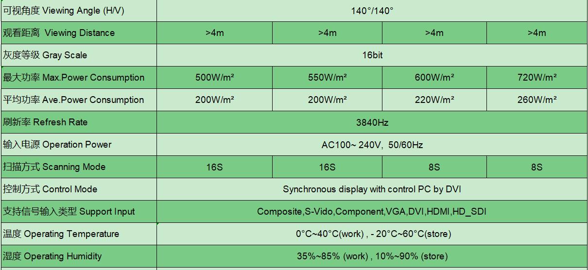 4.節(jié)能環(huán)保,相比其他顯示屏產(chǎn)品,功耗降低50~70%, 平均功耗僅為200W/㎡