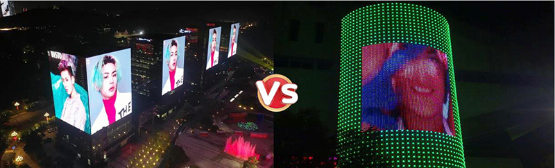 利亞德從事LED顯示屏產(chǎn)品已經(jīng)有20年歷史了,實(shí)力雄厚,產(chǎn)品質(zhì)量過(guò)硬。那么我們的LED共形屏跟傳統(tǒng)LED點(diǎn)光源、洗墻燈有哪些區(qū)別呢,可以從一下幾個(gè)方面對(duì)比: