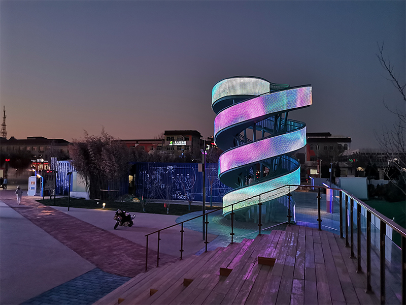 LED曲面屏的模塊輕巧,薄且彎曲,可以隨意彎曲,同時安裝方式更加多樣,比如落地式、懸掛式、嵌入式、吊頂式等,可以更好地滿足個性化設計的需要,提升了LED顯示屏的視覺體驗,同時也拓展了LED曲面屏的應用場景。