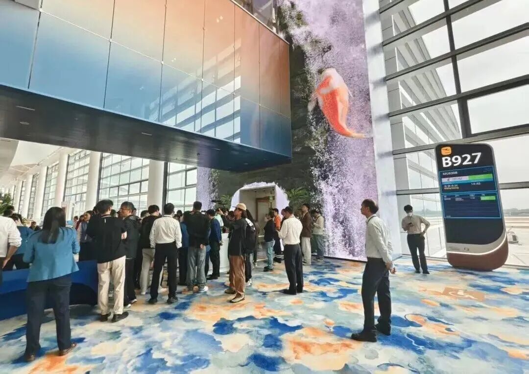 這塊屏幕像是一扇悄然打開的“未來之門”,透過充滿想象力的立體影像,將候機空間轉(zhuǎn)化為連接現(xiàn)實與數(shù)字、傳統(tǒng)與新潮的沉浸式界面。